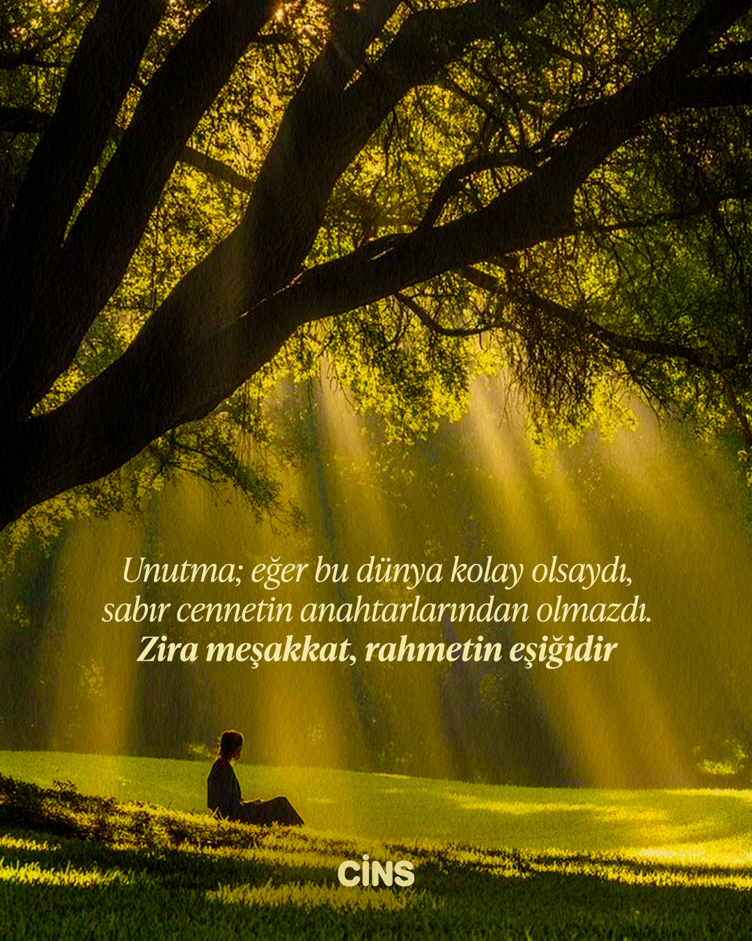 Unutma; eğer bu dünya kolay olsaydı, sabır cennetin anahtarlarından olmazdı. Çünkü insan, zorlukla yoğrulur; olgunlaşmak, sükûnetle değil, imtihanla mümkündür. Her meşakkat, kalbin daha derin bir hakikate yaklaşması içindir. Bazen bir kaybın ardından büyür insan, bazen bir bekleyişte sabrı öğrenir. Rahmet, çoğu zaman görünmez bir çileye saklanır; acının içinde gizli bir iyilik, gecenin ardında doğmayı bekleyen bir sabah vardır. Hayatın yükü ağır görünür belki, ama o yük insanı şekillendirir. Bu yüzden yılma; çünkü sabır, rahmetin kapısını aralar. Ve bil ki her zorluk, bir kolaylığın eşiğidir. 🍃